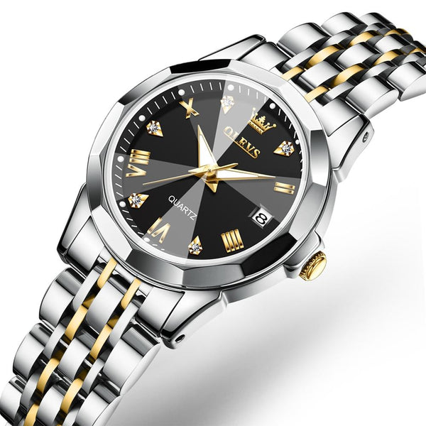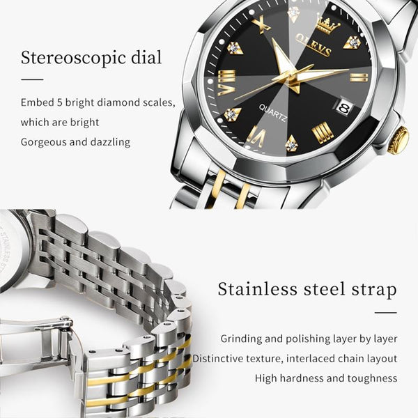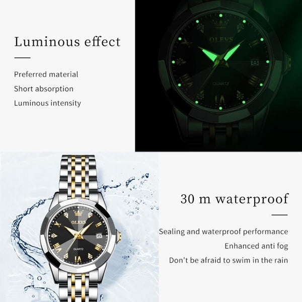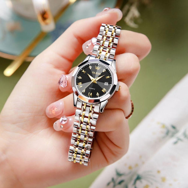 OLEVS 9931 Women Butterfly Buckle Luminous Waterproof Quartz Watch(Black + Gold)