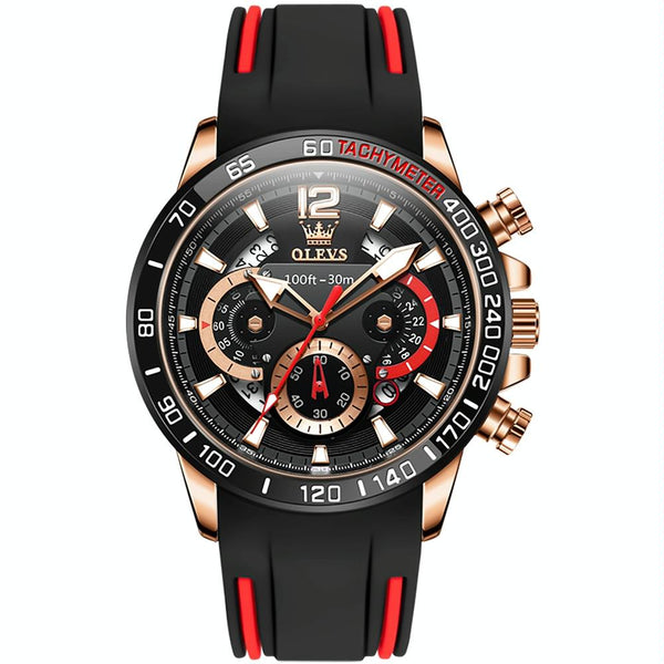 OLEVS 9936 Men Multifunctional Sports Waterproof Quartz Watch(Black + Rose Gold)