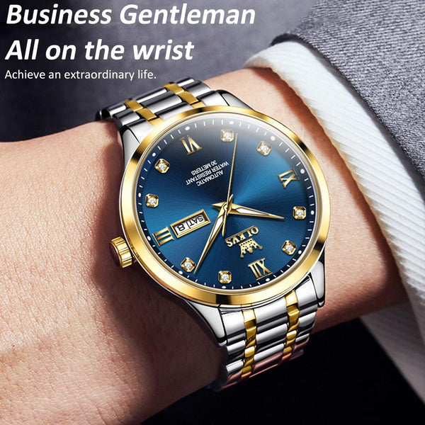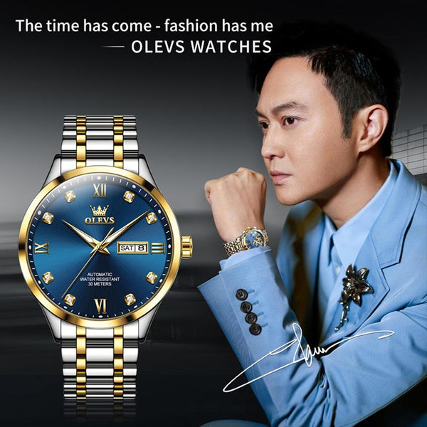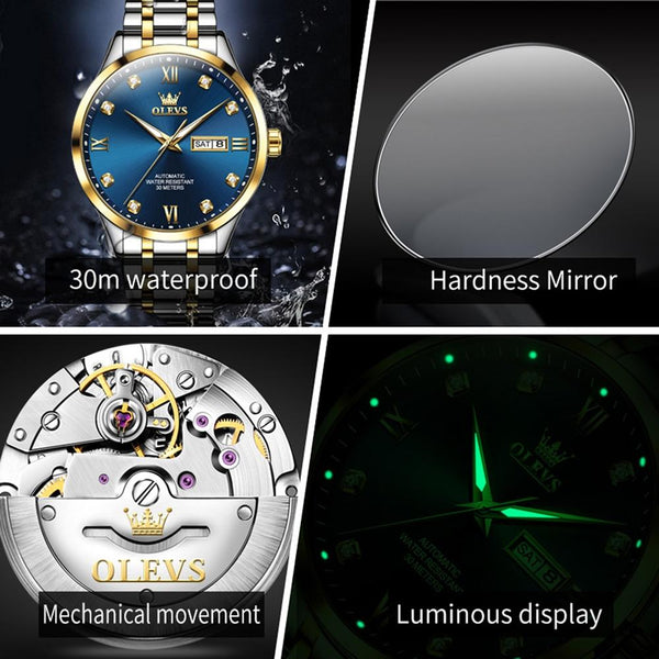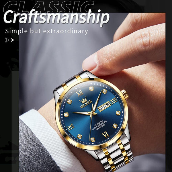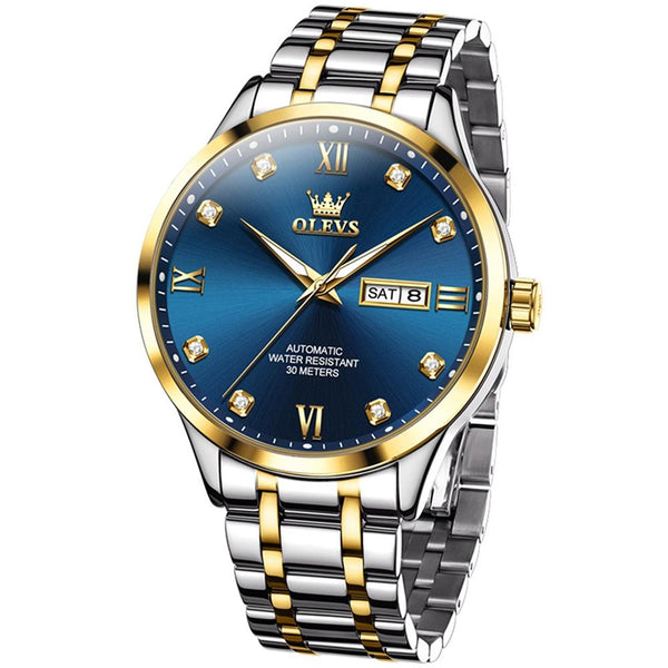 OLEVS 9946 Men Diamond Roman Scale Waterproof Quartz Watch(Blue + Gold)
