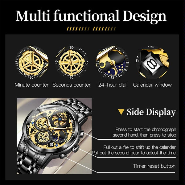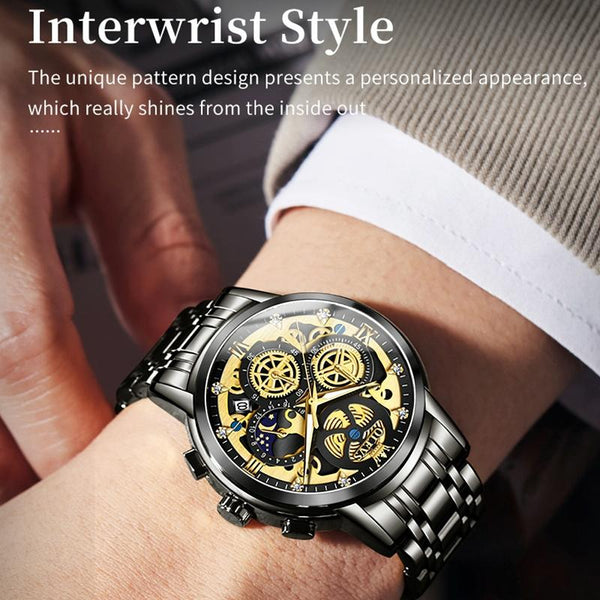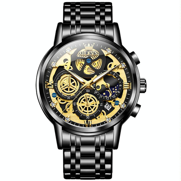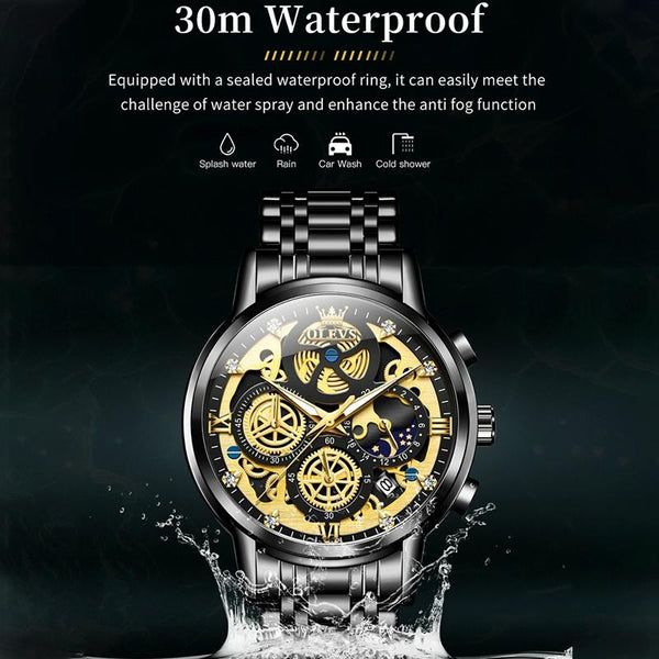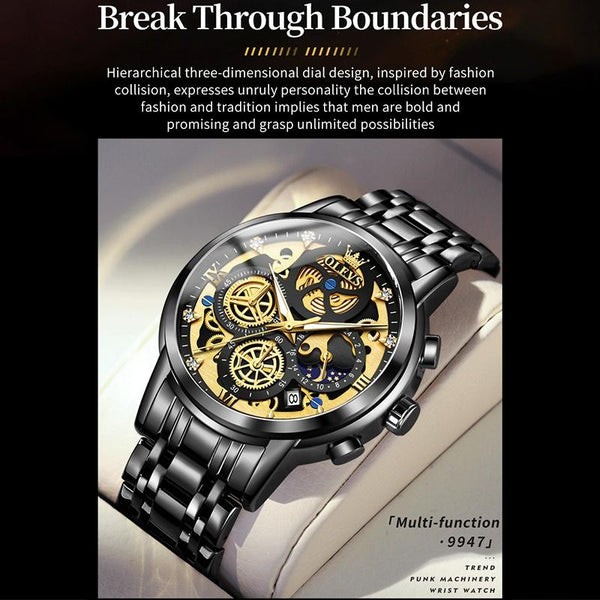 OLEVS 9947 Men Multifunctional Hollow Waterproof Quartz Watch(Black)
