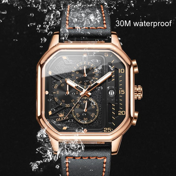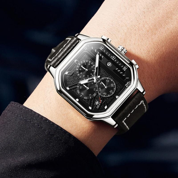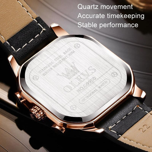 OLEVS 9950 Square Multifunctional Men Quartz Watch(Black Silver)