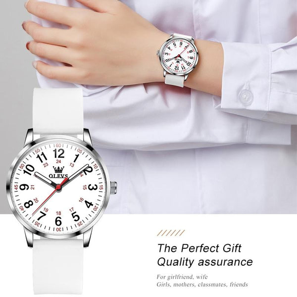 OLEVS 9953 Women Simple Silicone Strap Waterproof Quartz Watch(White)