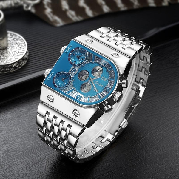 Oulm 9315 Multi Time Zone Large Dial Luminous Men Watch Steel Strap Casual Quartz Watch(Silver)