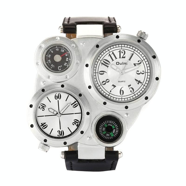 Oulm 9415 Double Time Zone Men Belt Watch Big Dial Compass Quartz Watch(White)