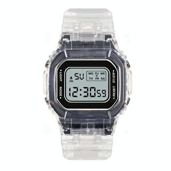 Outdoor Sports Simple Transparent Case Waterproof Luminous Electronic Watch(Transparent Square Black)