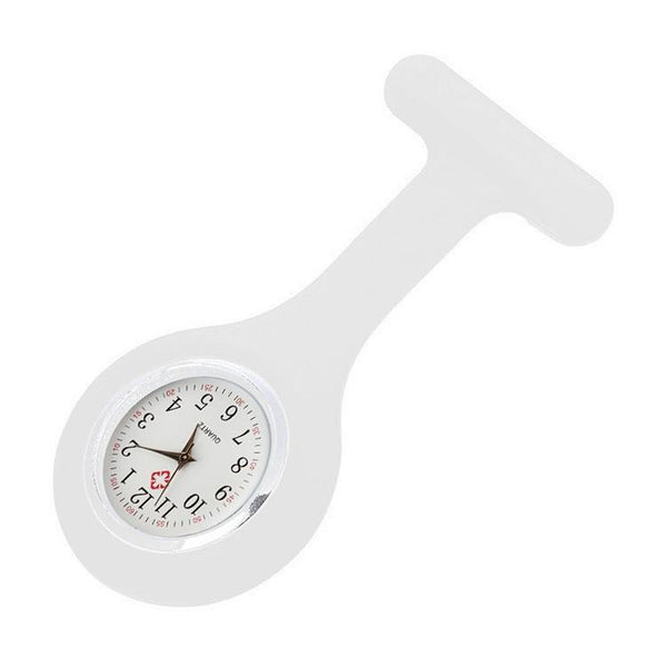 Portable Silicone Nurse Round Quartz Wristwatch Watch with Pin(White)