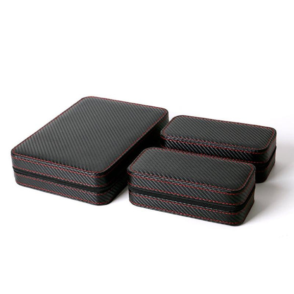 PU Leather Full Carbon Fiber Zipper Watch Bag Watch Storage Display Box, Style:04 Watch Position