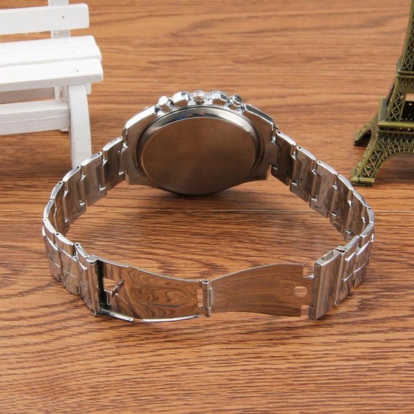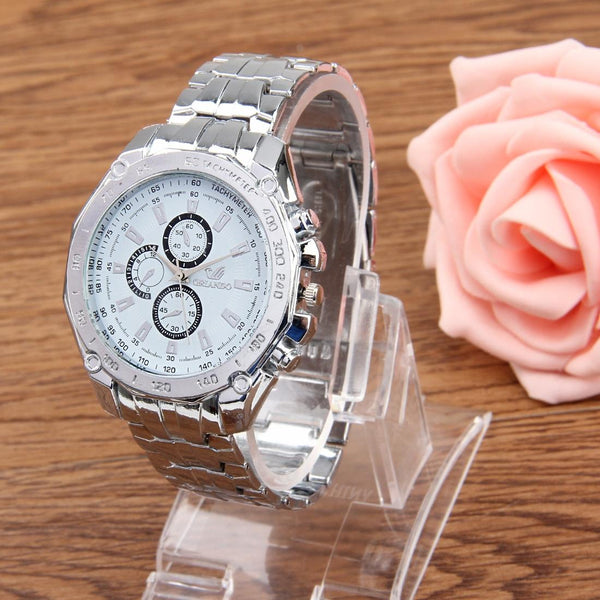 Round Dial 3 Decoration Dials Men Quartz Watch with Metal Band(White)
