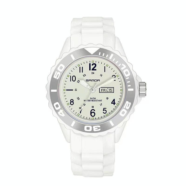 SANDA 1053 Womens TPU Strap Dual Display Waterproof Electronic Watch(White)