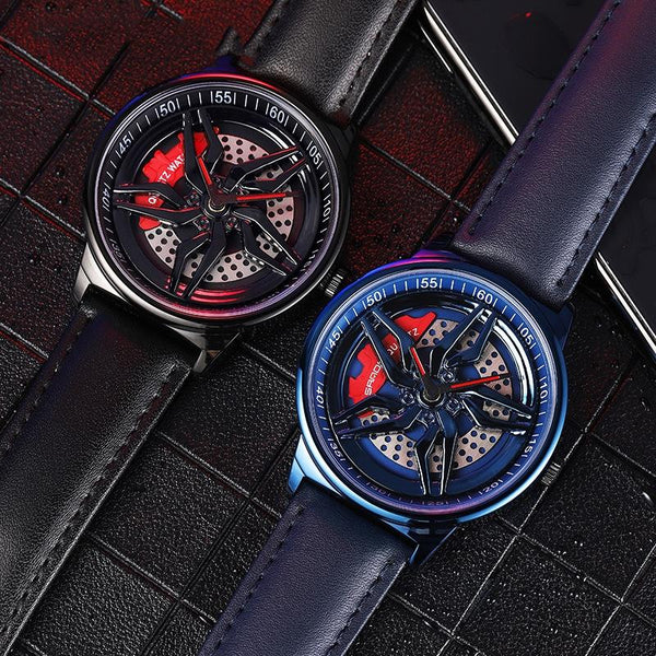 SANDA 1062 360 Degree Hollow Spinning Dial Leather Strap Quartz Watch for Men(Silver)