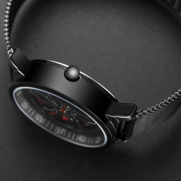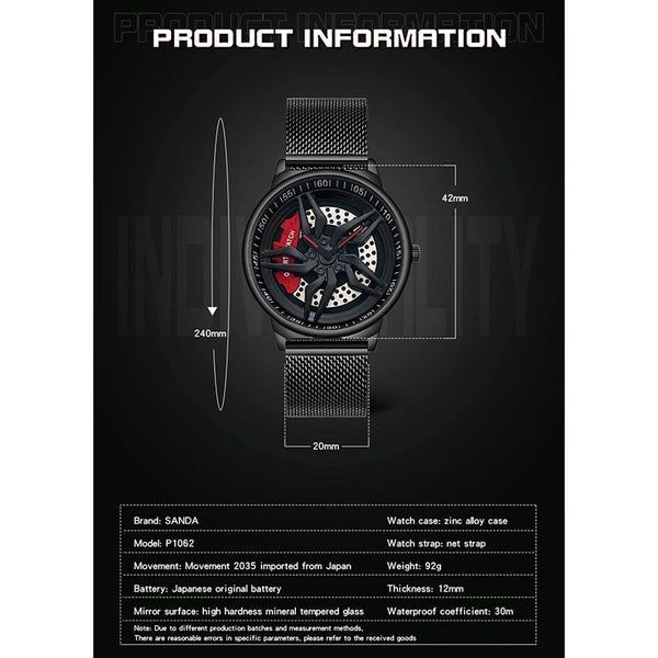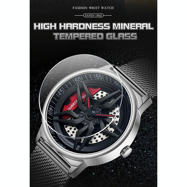 SANDA 1062 360 Degree Hollow Spinning Dial Mesh Strap Quartz Watch for Men(Silver)