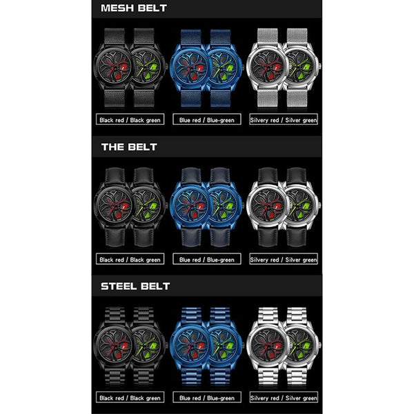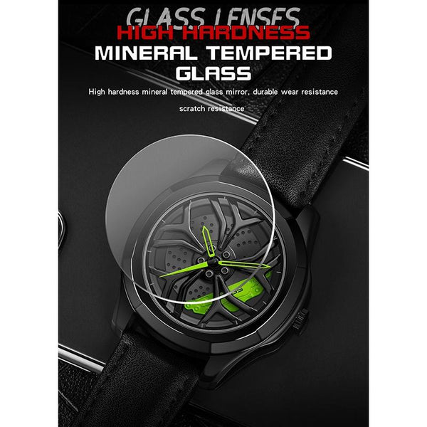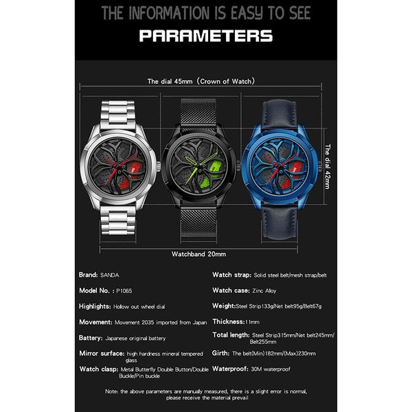 SANDA 1065 3D Hollow Out Wheel Non-rotatable Dial Quartz Watch for Men, Style:Mesh Belt(Black Green)