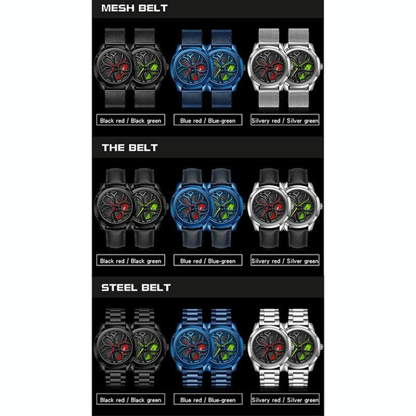 SANDA 1065 3D Hollow Out Wheel Non-rotatable Dial Quartz Watch for Men, Style:Steel Belt(Black Red)