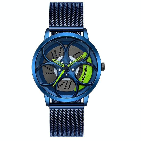 SANDA 1070 3D Oval Hollow Out Wheel Non-rotatable Dial Quartz Watch for Men, Style:Mesh Belt(Blue Green)