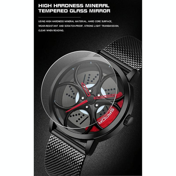 SANDA 1070 3D Oval Hollow Out Wheel Non-rotatable Dial Quartz Watch for Men, Style:Mesh Belt(Silver Red)