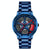 SANDA 1070 3D Oval Hollow Out Wheel Non-rotatable Dial Quartz Watch for Men, Style:Steel Belt(Blue Red)