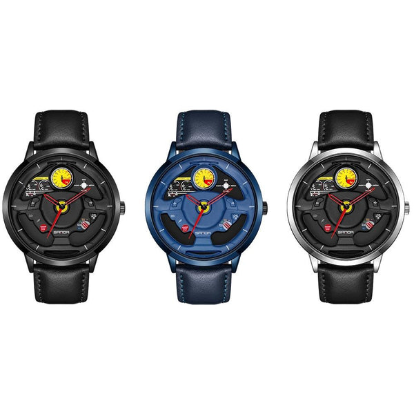 SANDA 1085 Steering Wheel Hollow Dial Waterproof Quartz Watch, Style:Leather Band(Black)