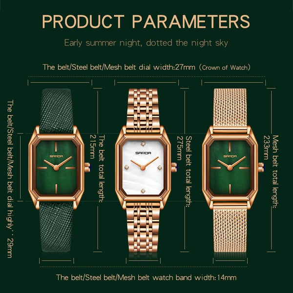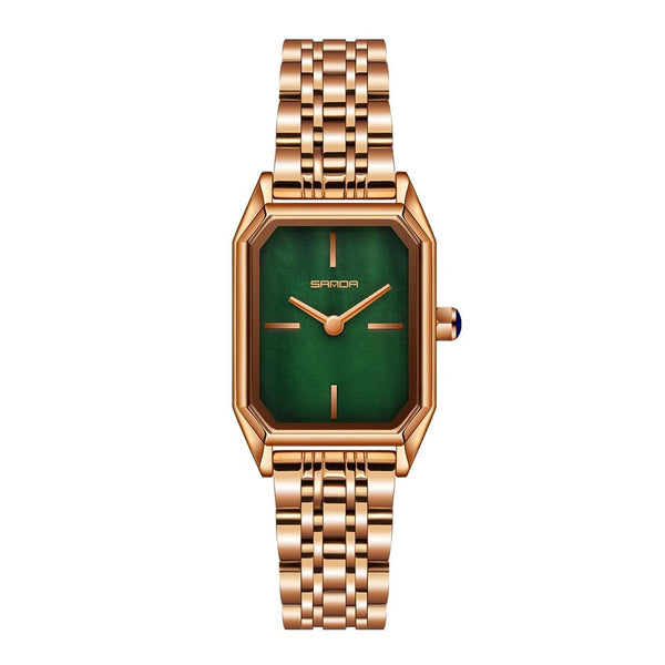 SANDA 1096 Bold Octagonal Dial Waterproof Lady Watch, Style:Steel Band(Green)
