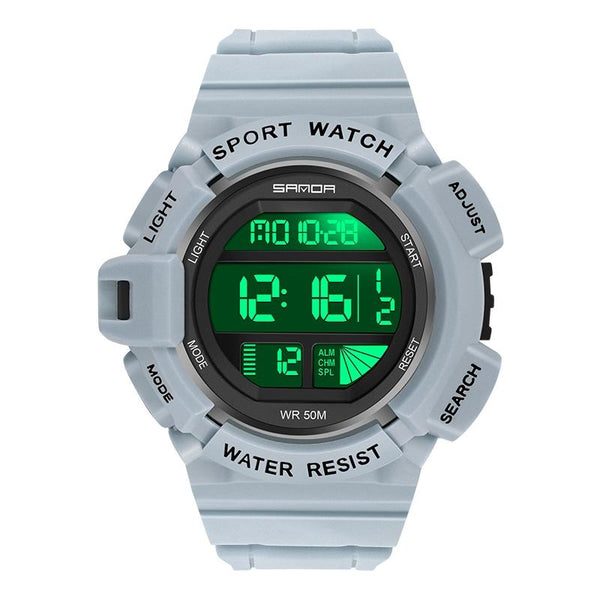 SANDA 2106 LED Digital Display Luminous Alarm Clock Men Outdoor Sports Electronic Watch(Grey)