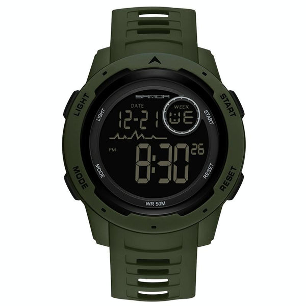SANDA 2125 Luminous Waterproof Dual Display Electronic Watch(Army Green)