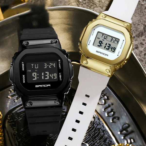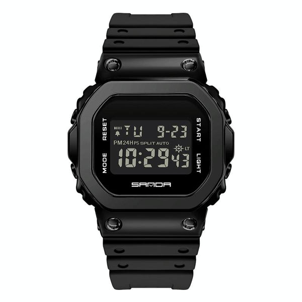 SANDA 2126 Tempered Mirror Luminous Waterproof Dual Display Electronic Watch(Black)