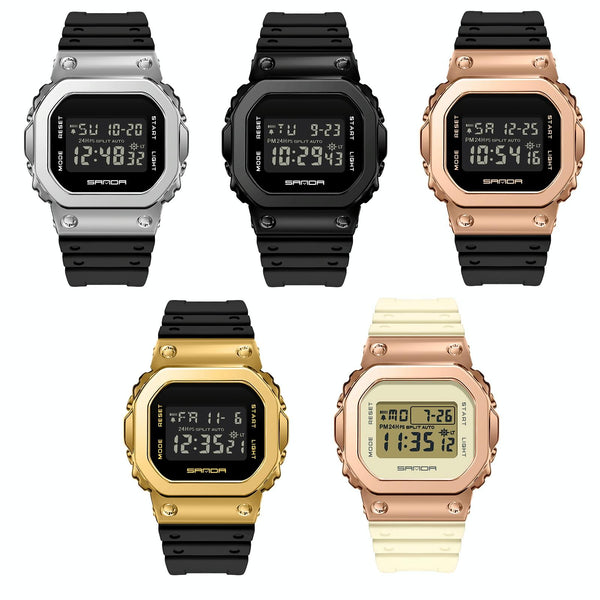 SANDA 2126 Tempered Mirror Luminous Waterproof Dual Display Electronic Watch(Black Gold)