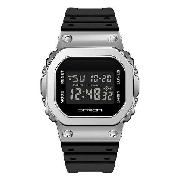 SANDA 2126 Tempered Mirror Luminous Waterproof Dual Display Electronic Watch(Black Silver)