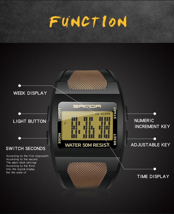 SANDA 222 Men Sports Outdoor Mountaineering Digital Electronic Watch Square Multi functional Waterproof Watch(Blue)