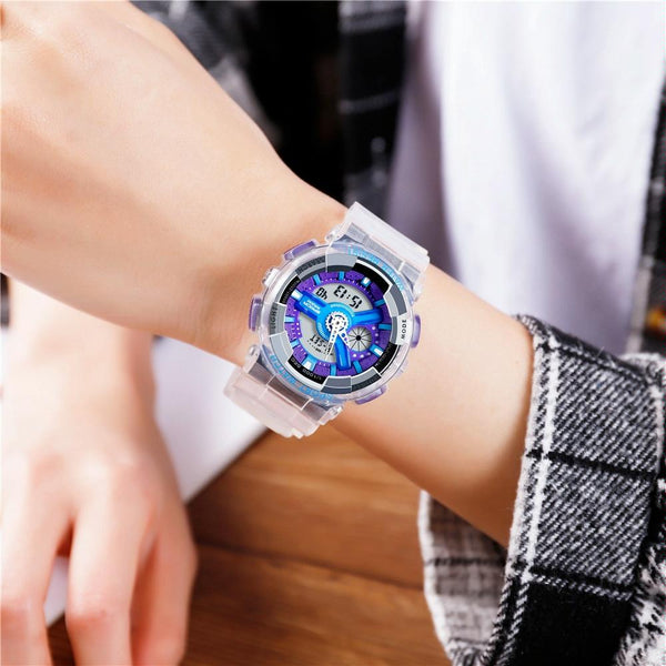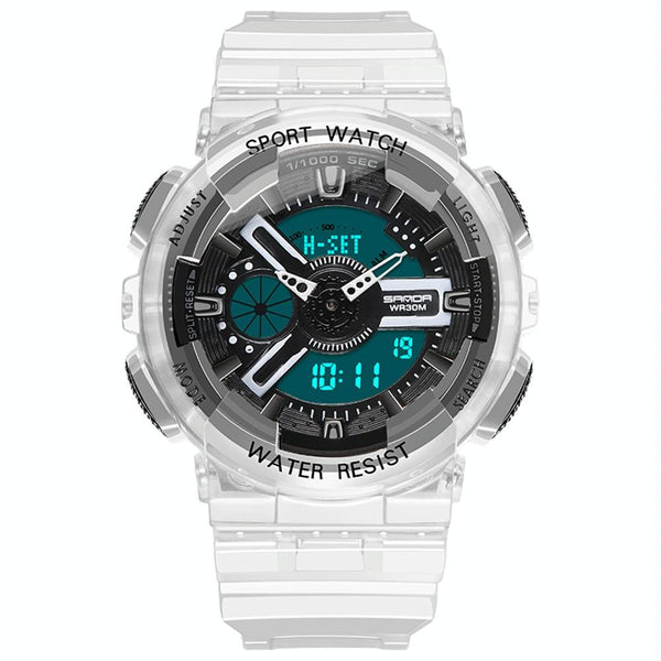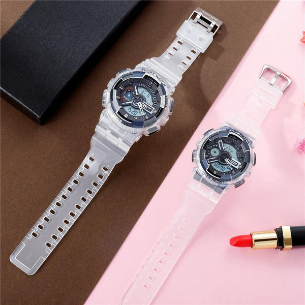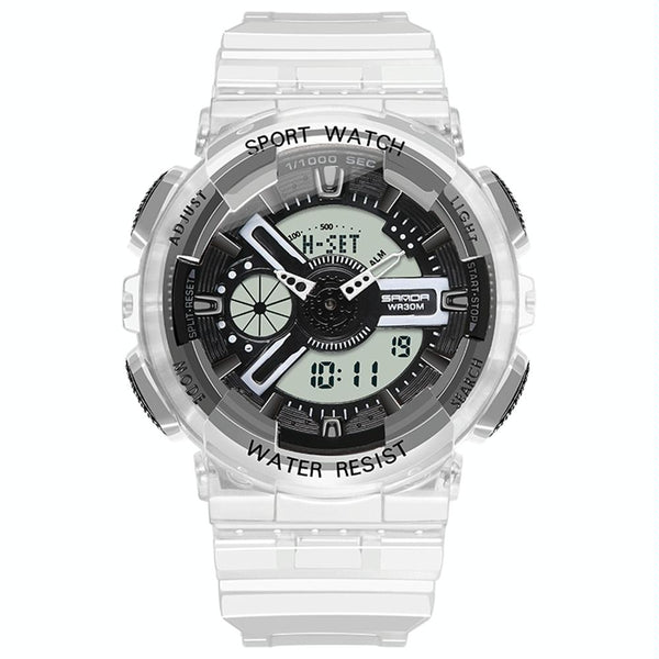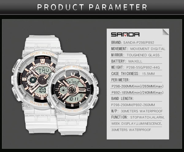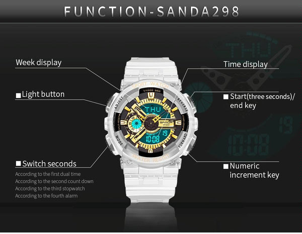 SANDA 298 Watch Men And Women Transparent Watch Waterproof Multi Functional luminous Movement Double Display Couple Electronic Watch(Black Woman)