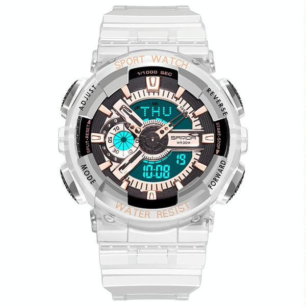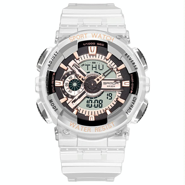 SANDA 298 Watch Men And Women Transparent Watch Waterproof Multi Functional luminous Movement Double Display Couple Electronic Watch(Rose Gold Man)