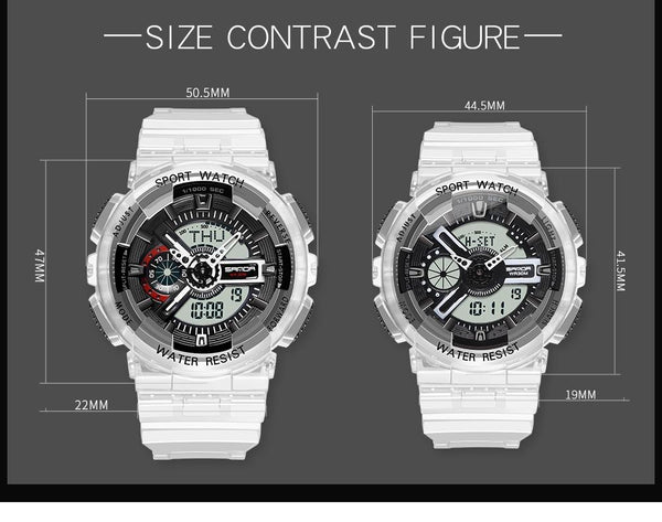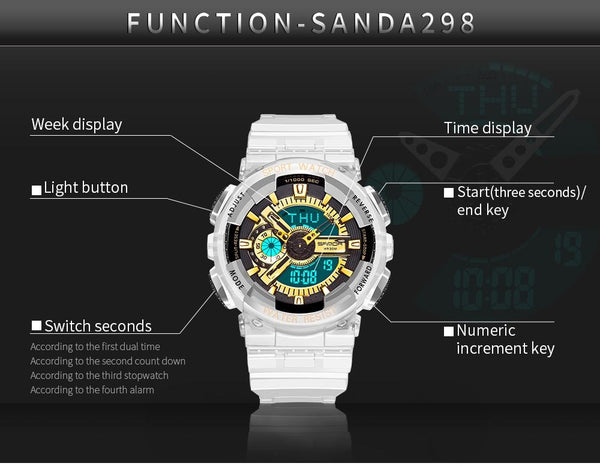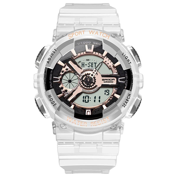 SANDA 298 Watch Men And Women Transparent Watch Waterproof Multi Functional luminous Movement Double Display Couple Electronic Watch(Rose Gold Woman)