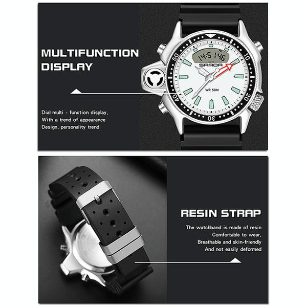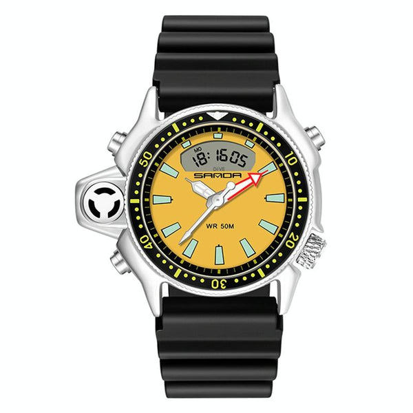 SANDA 3008 Multifunctional Men Outdoor Sports Noctilucent 50m Waterproof Digital Wrist Watch (Black Yellow)