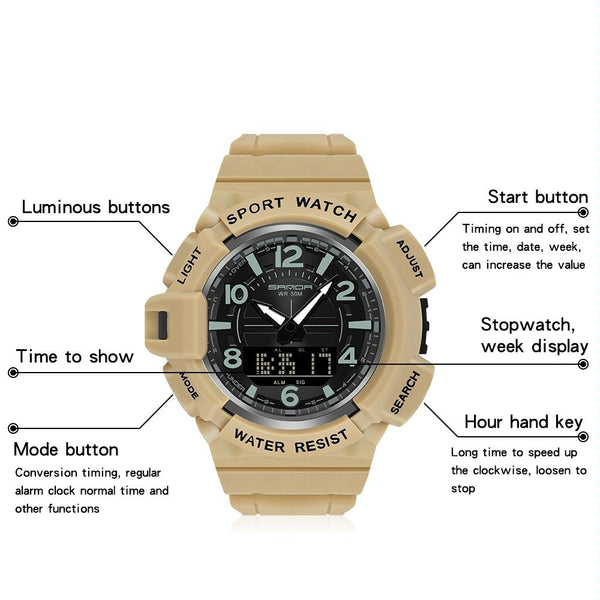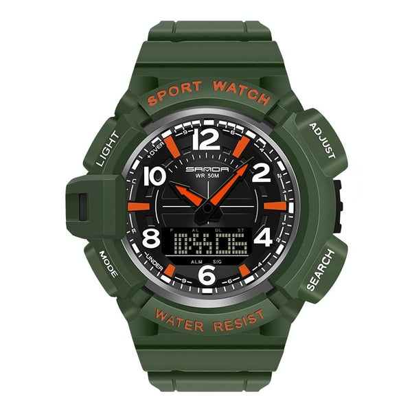 SANDA 3101 Dual Time Dispay Dial Luminous Timer Alarm Clock Electronic Watch for Men(Army Green)