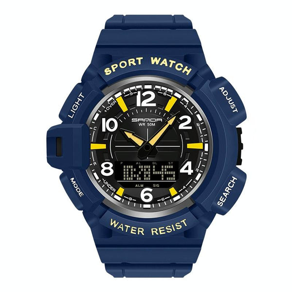 SANDA 3101 Dual Time Dispay Dial Luminous Timer Alarm Clock Electronic Watch for Men(Deep Blue)