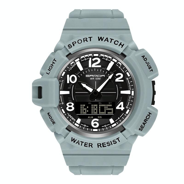 SANDA 3101 Dual Time Dispay Dial Luminous Timer Alarm Clock Electronic Watch for Men(Grey)