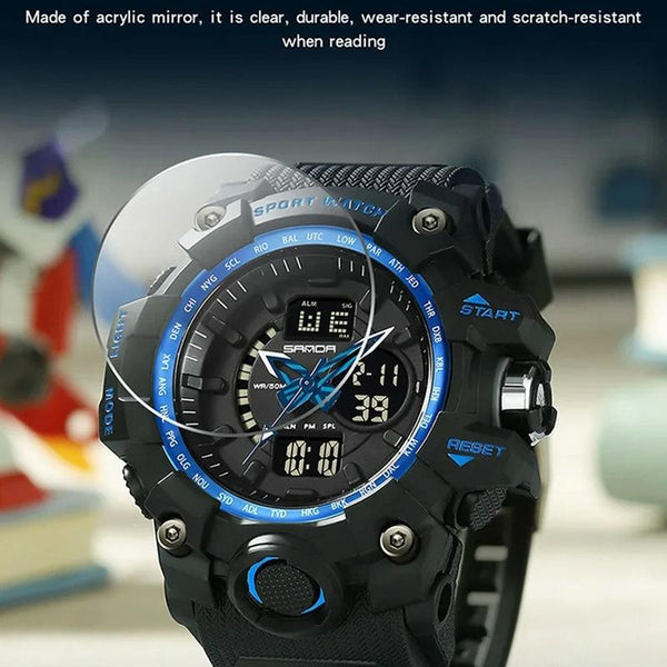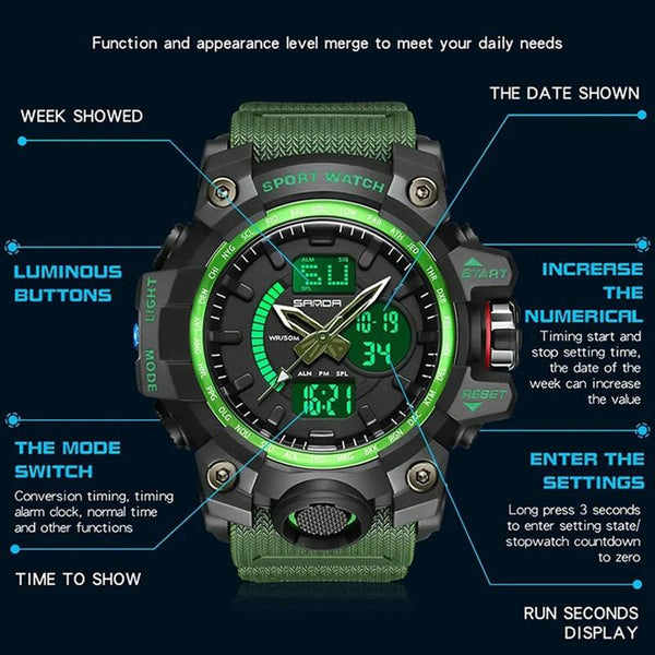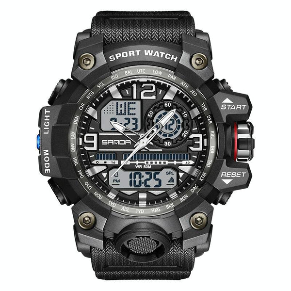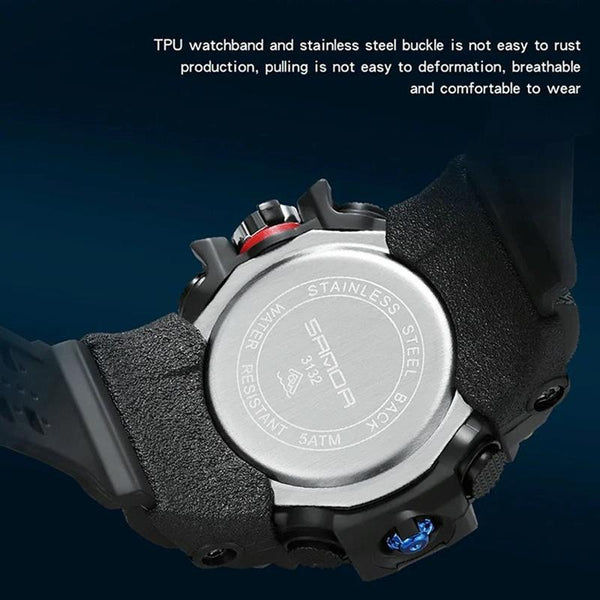 SANDA 3132 Men Multifunctional Waterproof Luminous Sports Watch(Black White)