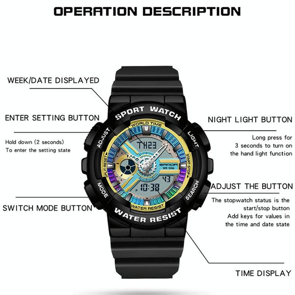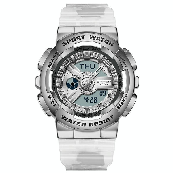 SANDA 3137 TPU Strap Luminous Waterproof Dual Display Electronic Watch(Transparent Silver)