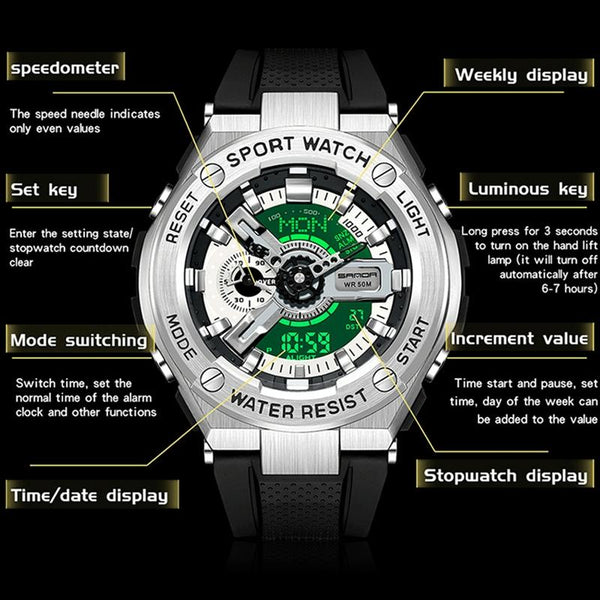 SANDA 3170 Men Luminous Waterproof Sports Watch(Black Gold)
