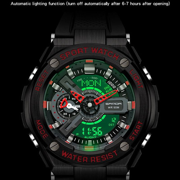 SANDA 3170 Men Luminous Waterproof Sports Watch(Black Green)