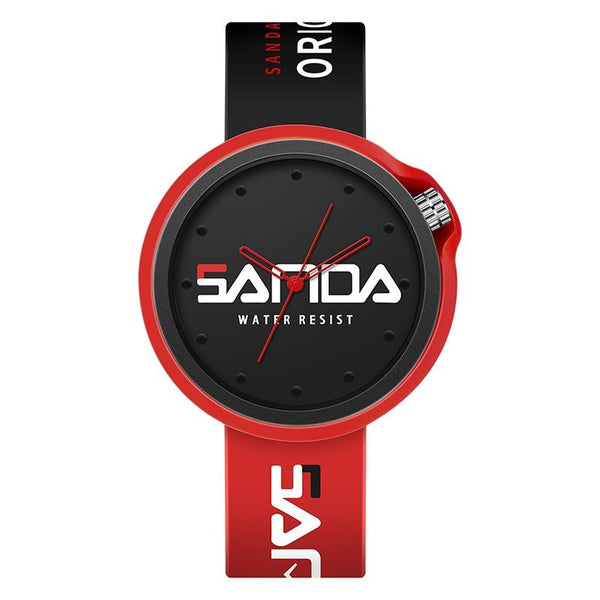 SANDA 3200 Silicone Belt Quartz Sports Watch For Men And Women(Red Black)