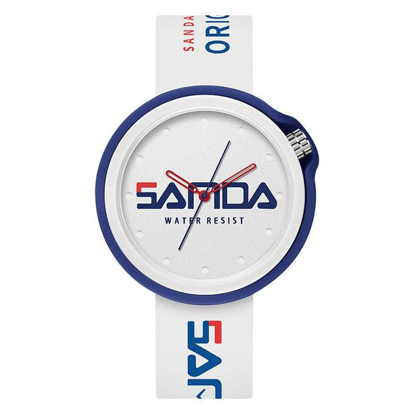 SANDA 3200 Silicone Belt Quartz Sports Watch For Men And Women(White Blue)