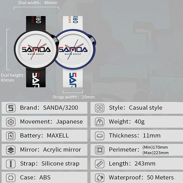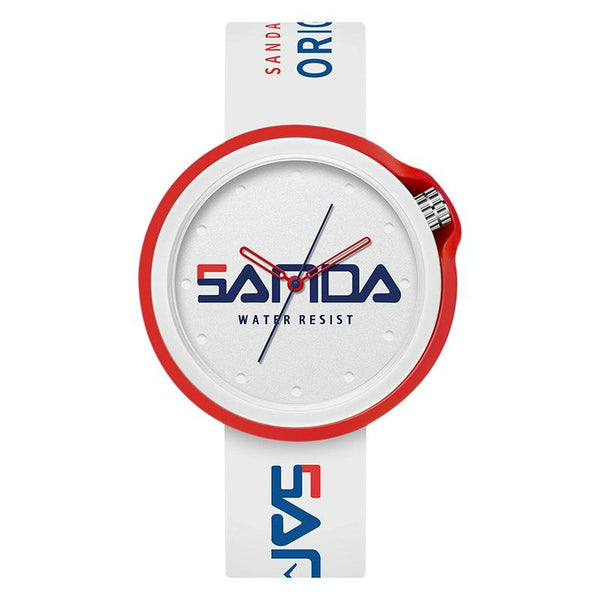 SANDA 3200 Silicone Belt Quartz Sports Watch For Men And Women(White Red)