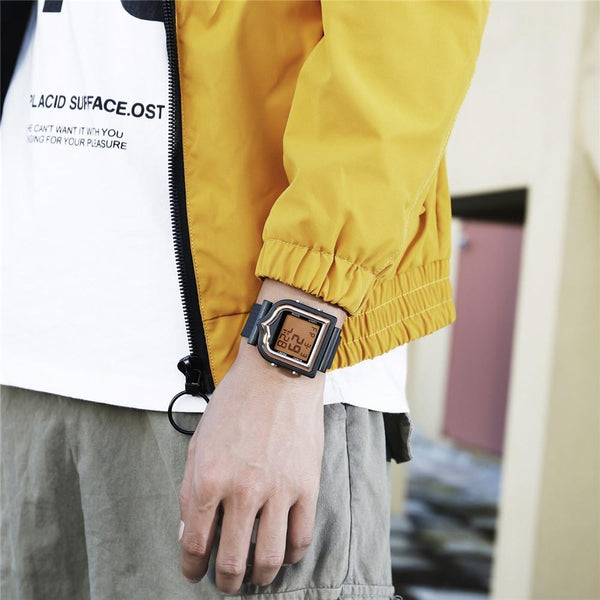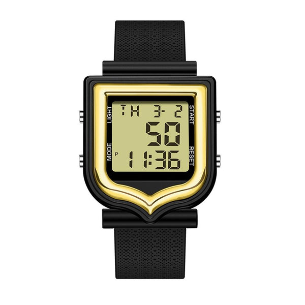 SANDA 388 Fashionable Square Outdoor Sports Leisure Watch Men's And Women's Multi-Functional Waterproof Luminous Electronic Watch(Gold)