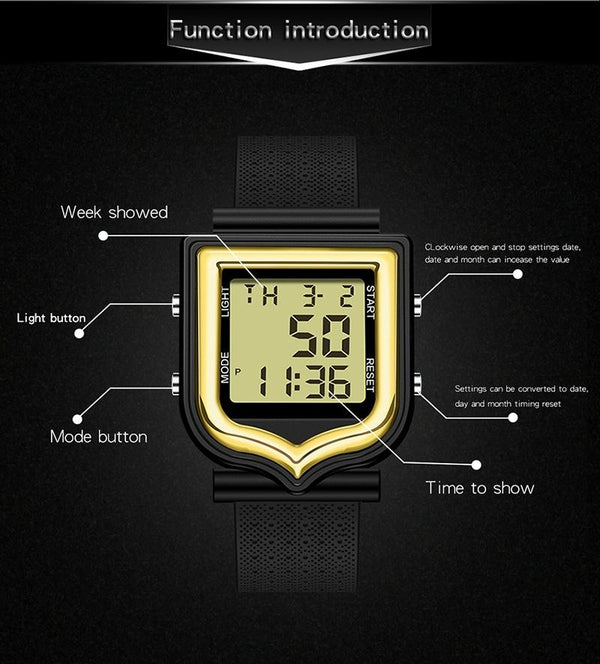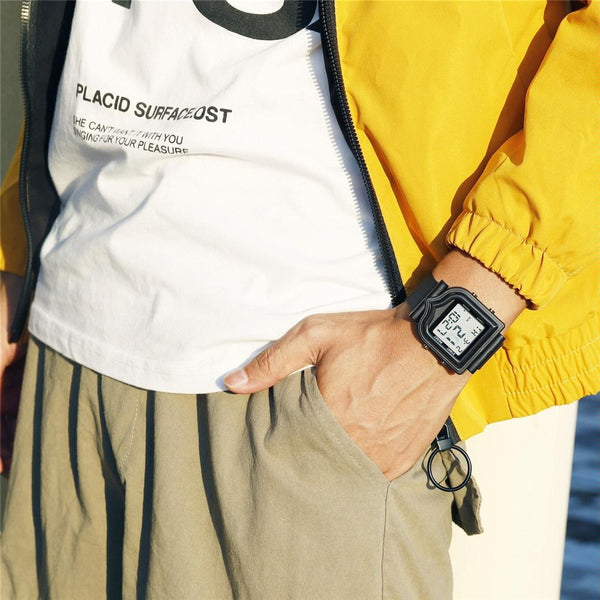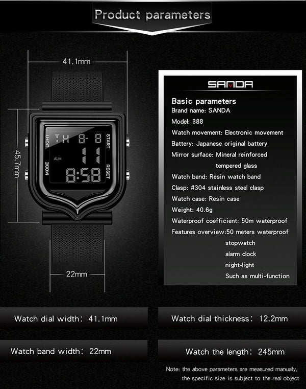 SANDA 388 Fashionable Square Outdoor Sports Leisure Watch Men's And Women's Multi-Functional Waterproof Luminous Electronic Watch(White)