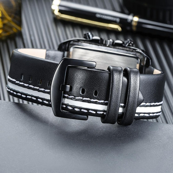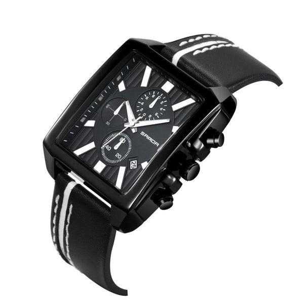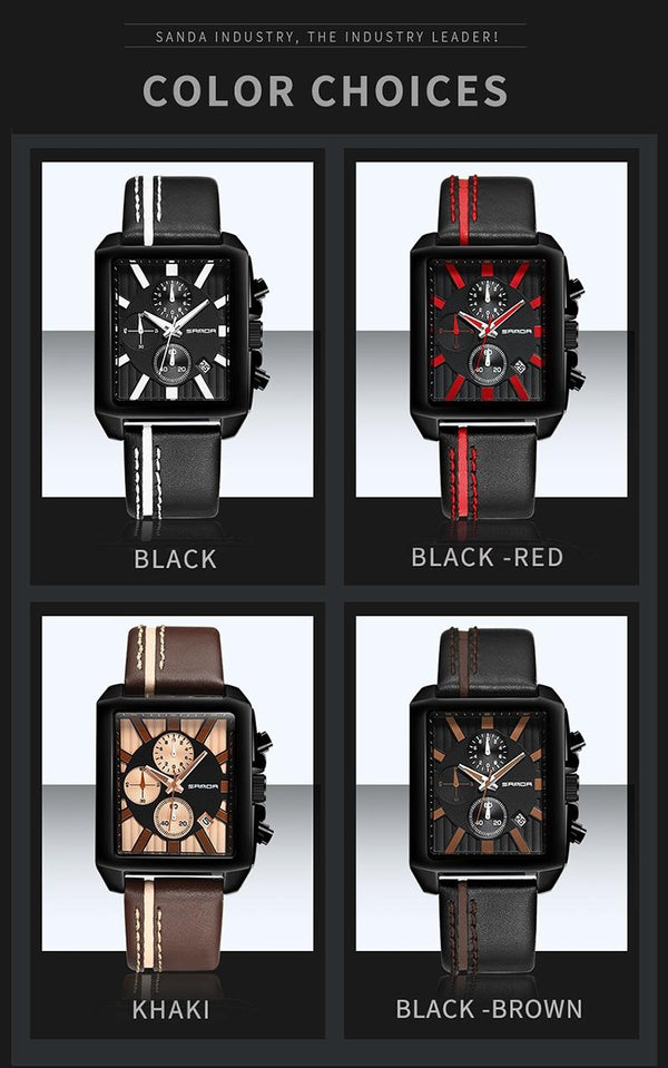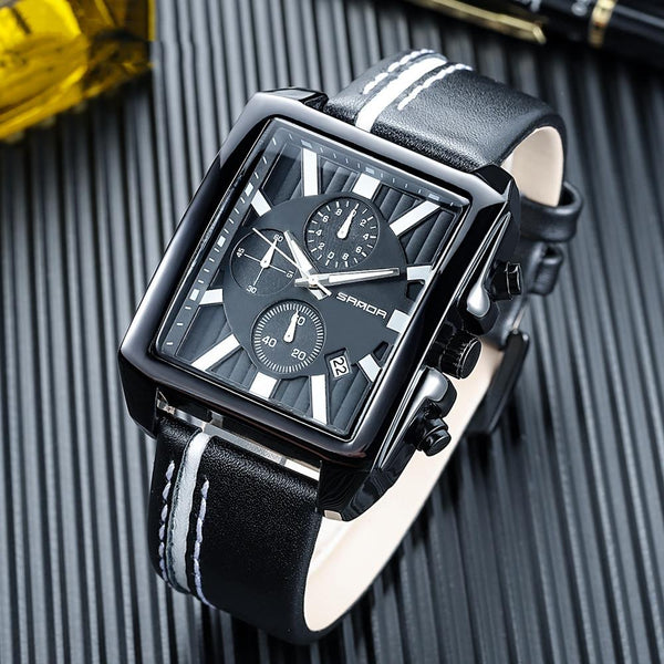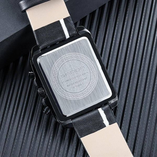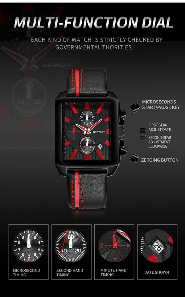 SANDA 5003 Three Eye Watch Six Pin Multi Purpose Sport Men Watch Leather Watch Student Waterproof Quartz Watch(Black)