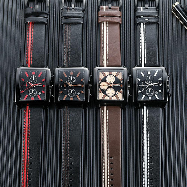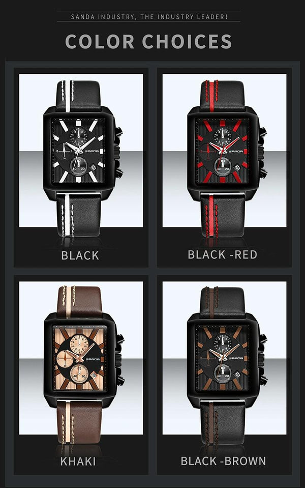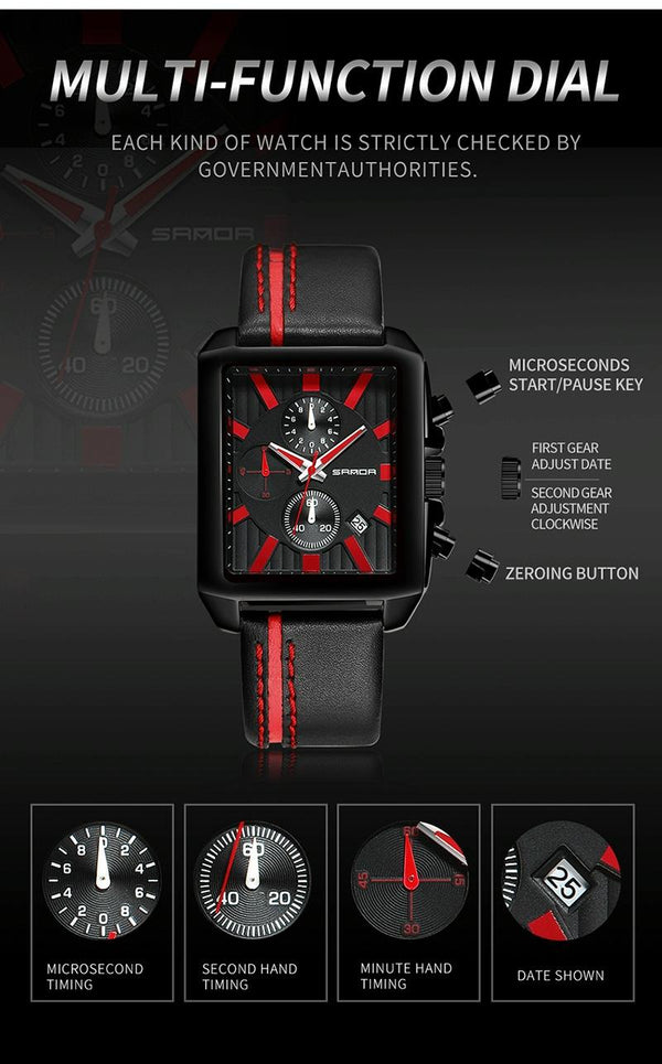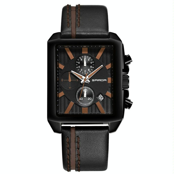 SANDA 5003 Three Eye Watch Six Pin Multi Purpose Sport Men Watch Leather Watch Student Waterproof Quartz Watch(Brown)