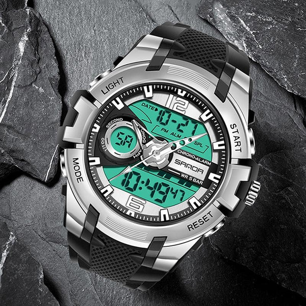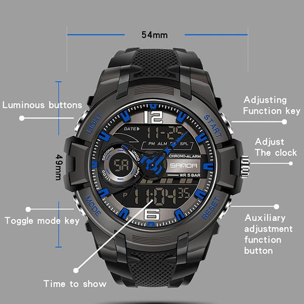 SANDA 6015 Men Multifunctional Waterproof Luminous Sports Watch(Black Blue)