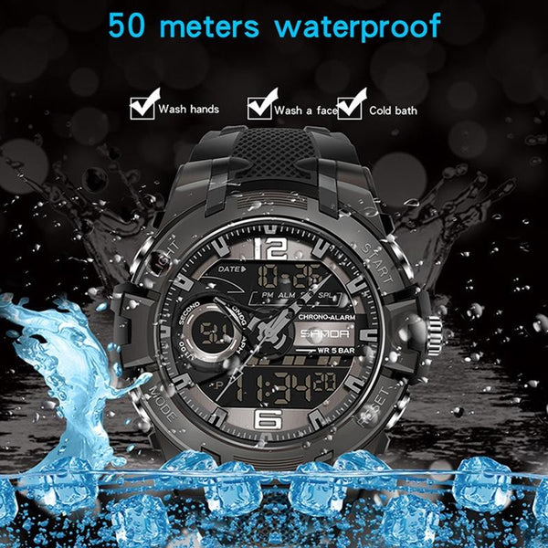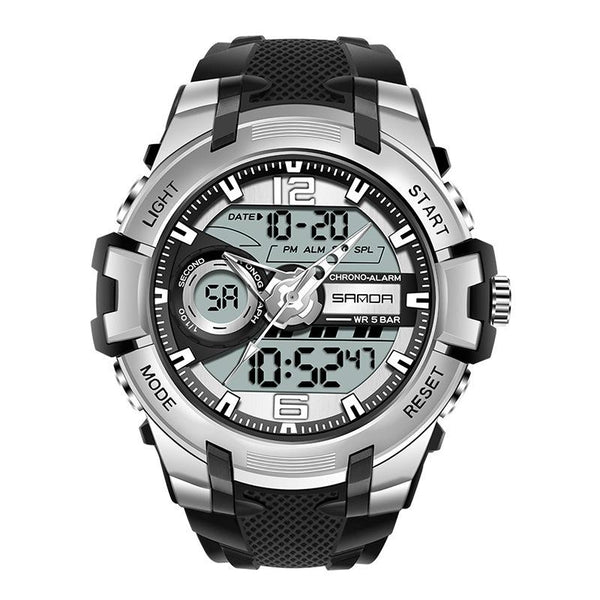 SANDA 6015 Men Multifunctional Waterproof Luminous Sports Watch(Black Silver)