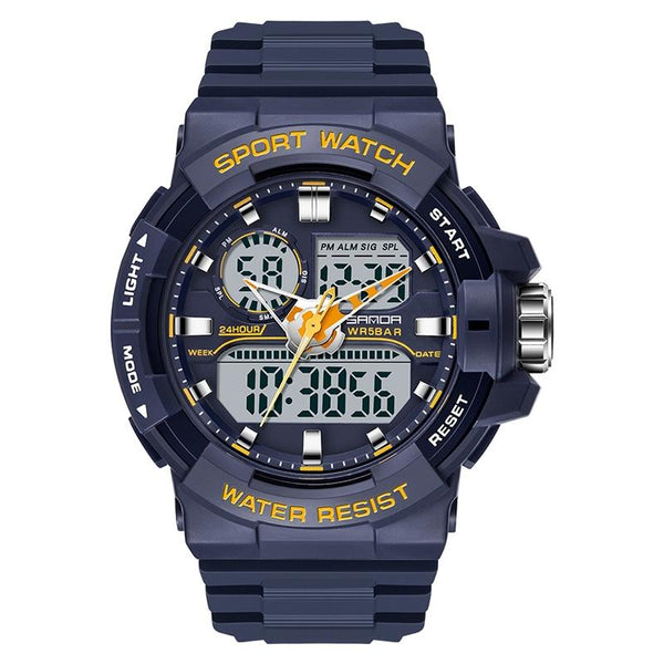 SANDA 6025 Dual Time Digital Display Luminous Calendar Waterproof Multifunctional Men Sports Quartz Watch(Sapphire Blue)
