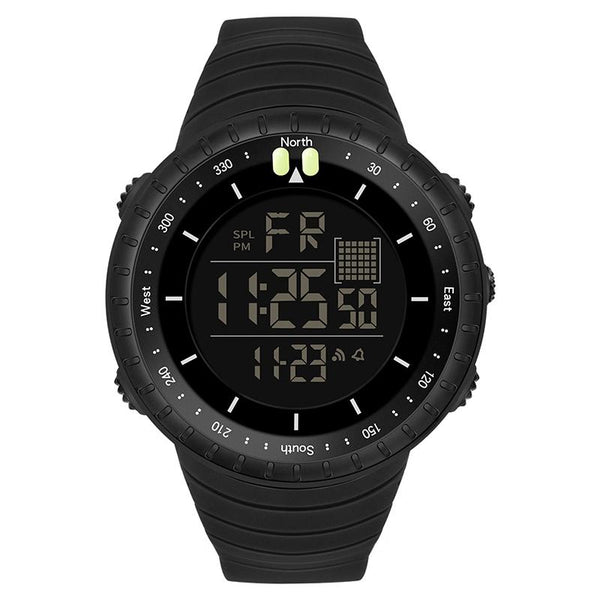 SANDA 6071 Three-split Screen LED Digital Display Luminous Stopwatch Timing Multifunctional Men Sports Electronic Watch(All Black)